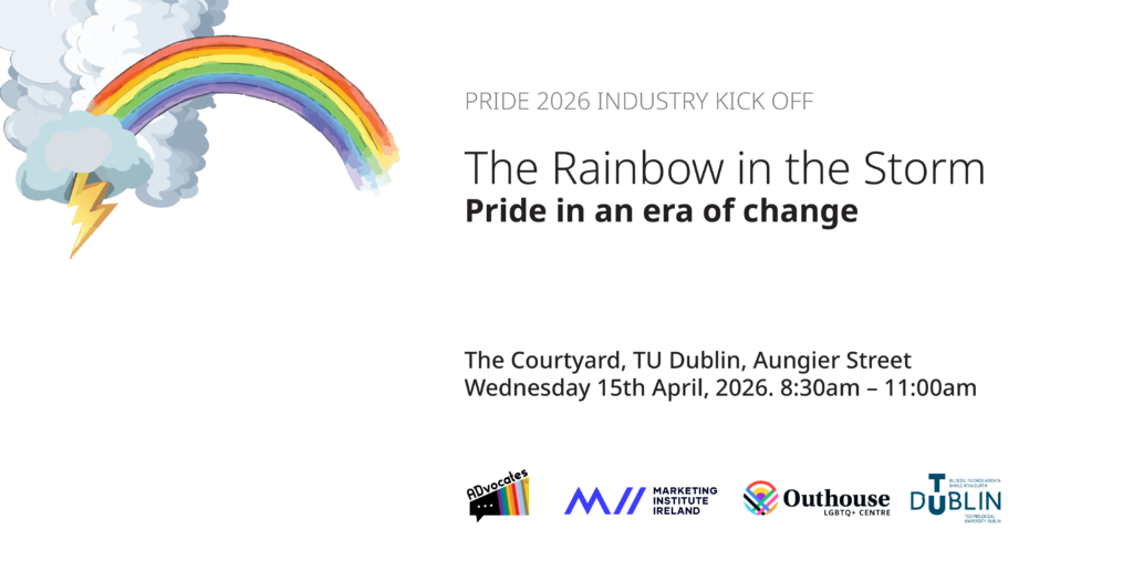 ADvocates Ireland have, once again, joined forces with Outhouse LGBTQ+ Centre, the Marketing Institute of Ireland and TU Dublin to kick off Pride 2026 with a morning of riveting discussion. Join us on Wednesday 15th April 8.30am-11am in The Courtyard, TU Dublin, Aungier Street for a look at how we can authentically and passionately continue to support the LGBTQ+ community through Pride campaigns.
